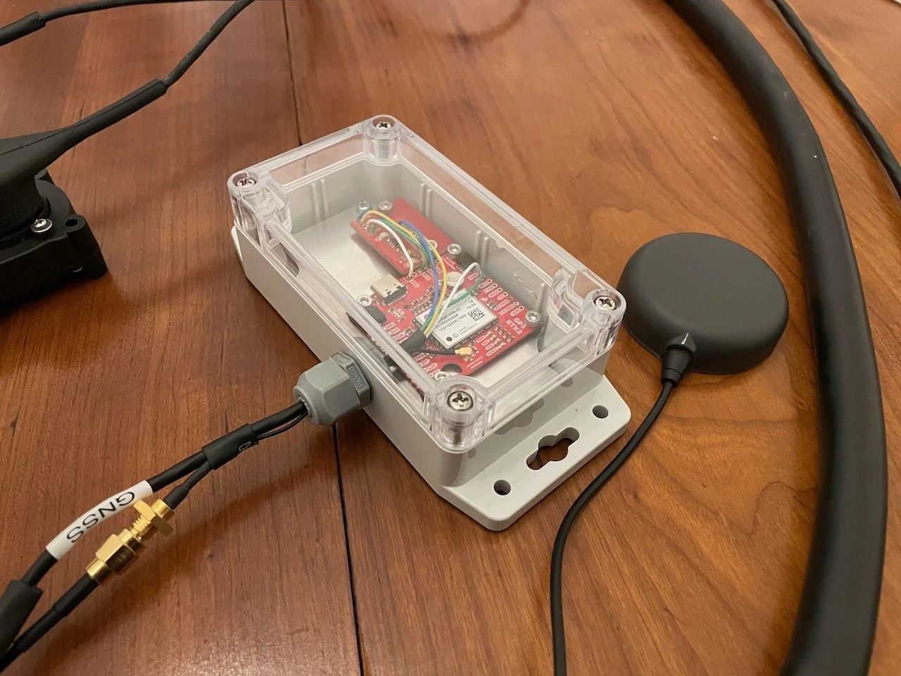 GNSS: The ublox ZED-F9P GNSS receiver I used does not have a robust enclosure, it is a development board. Also, the serial output used TTL voltage levels and not RS-232 which the C187 required. So, I had to build an enclosure for it and add in a logic level shifter to convert the output to RS-232. I used an IP65 rated case from polycase and added a sealed cable port for the board and antenna connection. While this custom arrangement is definitely more robust than a professionally manufactured sensor, I did so because I already had all of the HW necessary and I liked this particular ublox receiver. The GNSS antenna was placed underneath the top dash panel above the passenger airbag unit.